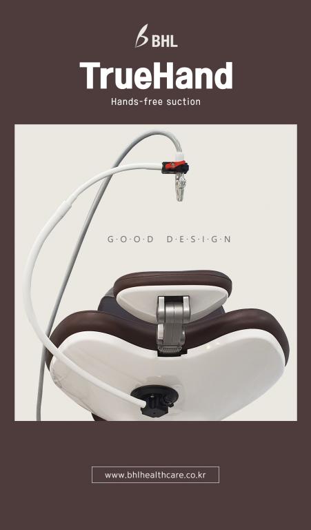 핸즈프리 석션 기기로 석션컵으로 유니트체어 후면에 간단 탈부착 가능하며 컴팩트한 디자인으로 어시스트 필요시 간섭이 적고 비사용시 체어 후면에 간단히 접어서 보관가능.